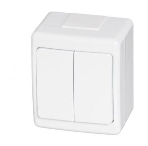 Întrerupător dublu aplicat, alb, 16A, 250V, IP44