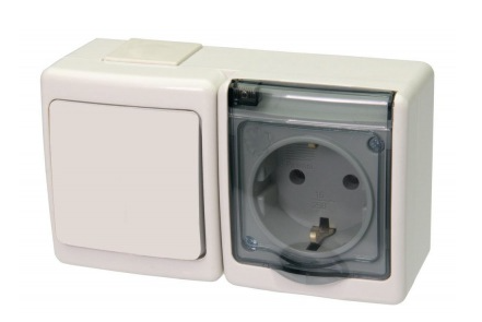 Priza simplă aplicată este proiectată pentru medii cu umiditate ridicată sau expuse la praf, oferind protecție suplimentară prin capacul transparent și gradul de protecție IP44. Aceasta include și un întrerupător integrat, permițând controlul direct al curentului pentru aparatul conectat.