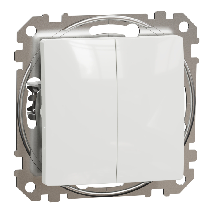 Acest întrerupător Sedna Design SDD111105 permite controlul a două circuite separate prin două clapete independente. Se montează încastrat și oferă o utilizare intuitivă prin basculantele ergonomice, fiind ideal pentru locuințe și spații interioare. Construcția din ABS-UV stabilizat și finisajul lucios alb garantează durabilitate și aspect uniform.