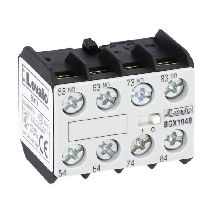 Acest contact auxiliar 4NO este destinat extinderii funcțiilor de comandă și semnalizare pentru mini-contactoarele din seria BG. Oferă patru contacte normal deschise, utile în aplicații unde este nevoie de mai multe circuite de control, interblocare sau semnalizare.