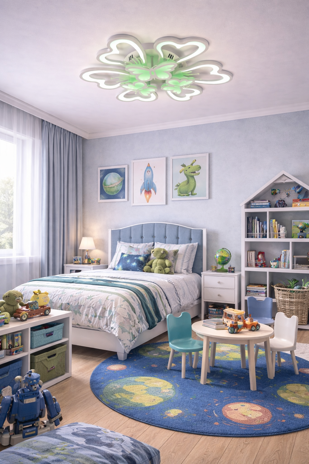 Plafoniera Butterfly face parte din gama de corpuri de iluminat decorative pentru interior, fiind concepută ca o soluție modernă și eficientă energetic pentru spații rezidențiale de dimensiuni medii și mari. Designul elegant, în finisaj alb, realizat din metal și acrilic, oferă un aspect modern și se integrează ușor în livinguri, dormitoare sau alte zone de locuit.