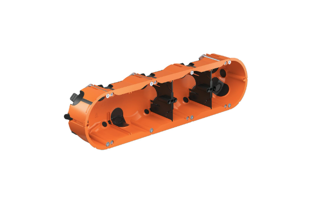 Această doză de aparat ermetică ECON® 4M este concepută pentru montaj încastrat și permite instalarea a patru aparate electrice într-o singură unitate, fiind ideală pentru combinații extinse de prize, întrerupătoare sau alte echipamente electrice. Designul etanș cu membrane de sigilare contribuie la menținerea unei instalații sigure și protejate împotriva circulației aerului.
