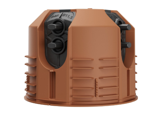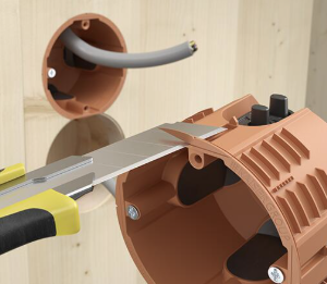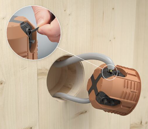 Designul modern include intrări de cablu poziționate pe circumferința laterală a dozei, ceea ce permite introducerea cablurilor fără unelte și oferă o compensare optimă pentru găurile de cablu realizate cu mici abateri în elementele din lemn. Astfel, instalarea rămâne curată și precisă, chiar și în pereți cu lemn aparent sau finisaj vizibil.