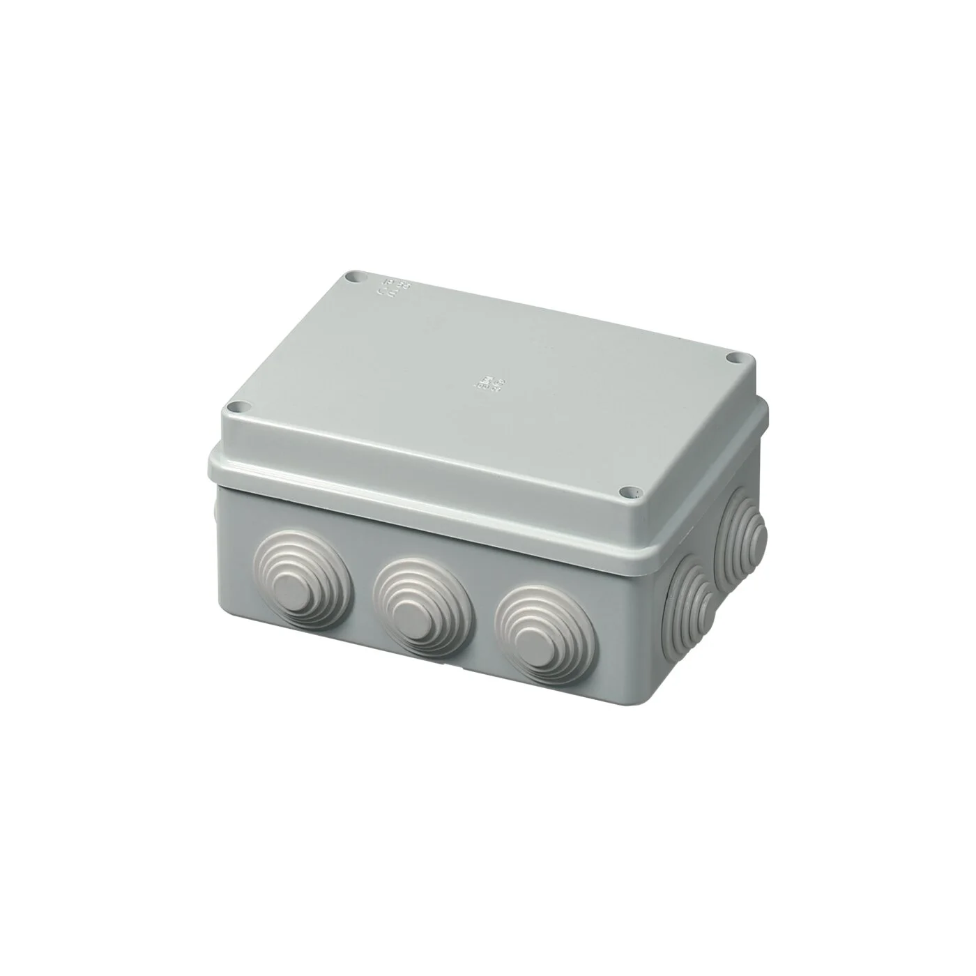 Carcasa este realizată din plastic rezistent, de culoare gri, cu formă dreptunghiulară, asigurând un volum interior generos pentru organizarea conductorilor. Intrările sunt prevăzute cu membrane decupabile pentru introducerea ușoară a cablurilor, iar capacul orb se fixează cu șuruburi, garantând o etanșare sigură și o exploatare fiabilă.