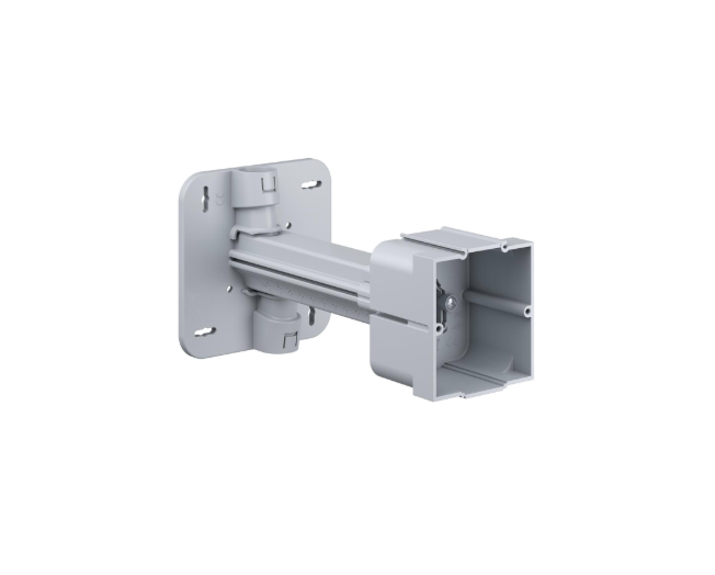 Montajul este simplificat datorită fixării frontale și opritorului de adâncime, prevenind instalarea incorectă. Doza permite instalarea accesoriilor de până la 5 kg, atât pe pereți, cât și pe tavan, fiind ideală pentru prize standard sau echipamente electrice compacte.