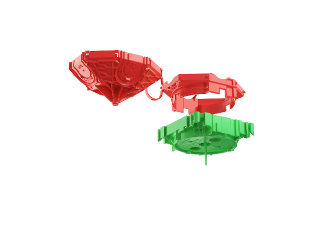 Doza vine în 2 piese, cu partea din spate turnată, fiind compatibilă cu toate tipurile de cofraje. Datorită partei frontale plate, inserția barelor de armare se realizează foarte ușor. Marcajele pentru cabluri și intrările pentru conducte asigură o instalare rapidă și precisă, iar sistemul de codificare prin culori KAISER permite verificarea rapidă a montajului pe șantier.