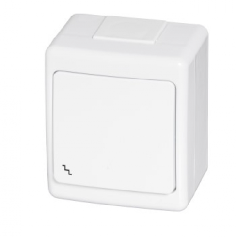 Acționarea se face prin buton basculant (rocker), iar fixarea se realizează cu șuruburi. Designul este simplu, de culoare alb (RAL 9010), potrivit pentru diverse tipuri de spații.