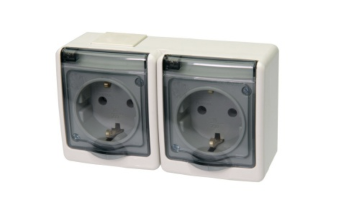 Priza dublă aplicată este ideală pentru exterior și spații cu umiditate sau praf, oferind protecție IP44. Capacitatea transparentă permite verificarea ușoară a prizelor, iar materialele rezistente la UV asigură durabilitate chiar și în condiții exterioare. Montajul se face simplu, direct pe perete.