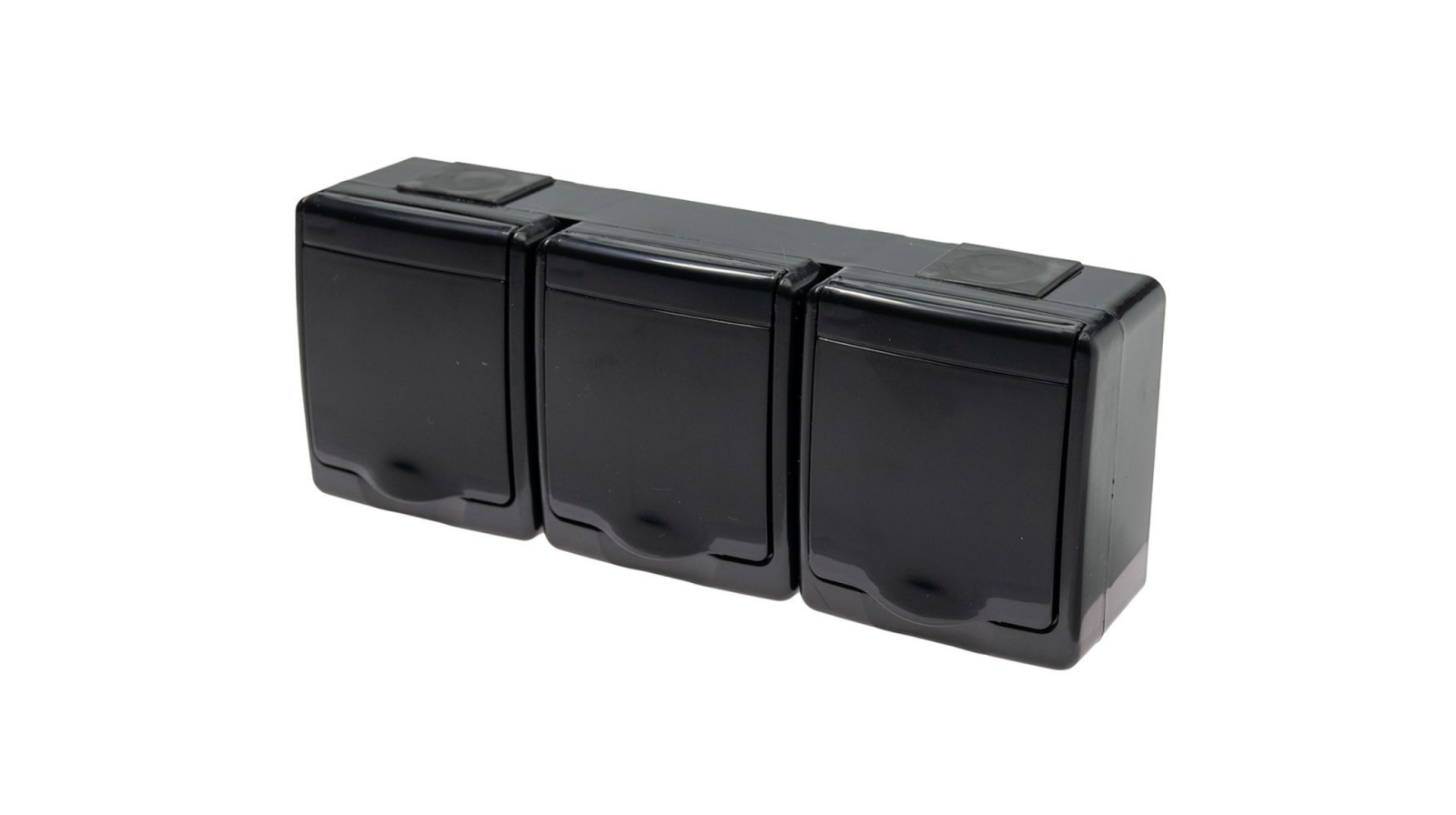 Priza triplă Beta este gândită pentru exterior și spații cu umiditate ridicată sau praf. Are capac negru pentru protecție suplimentară și permite conectarea în siguranță a mai multor aparate.