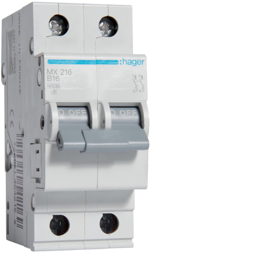 MX216 este o siguranță automată tip MCB cu 2 poli, potrivită pentru protecția circuitelor monofazate și bifazate, unde este necesară întreruperea simultană a ambilor conductori. Curba de declanșare B oferă reacție rapidă la suprasarcini și scurtcircuite, fiind indicată pentru circuite de iluminat, prize și alte aplicații cu sarcini reduse sau sensibile. Curentul nominal de 16A și capacitatea de rupere de 4.5kA asigură protecție sigură în tablouri electrice rezidențiale și comerciale.