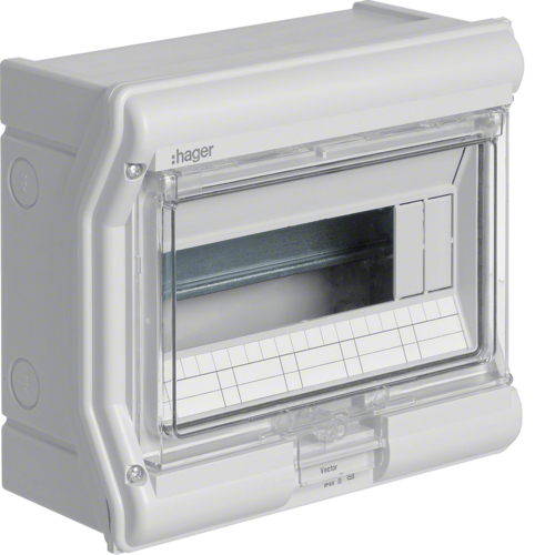 Construcția robustă din polistiren (PS), fără halogen, în culoare gri deschis (RAL 7035), oferă durabilitate și rezistență la impact (IK07). Ușa transparentă permite verificarea rapidă a echipamentelor fără deschiderea tabloului, iar sistemul de închidere cu arc asigură acces facil și sigur.