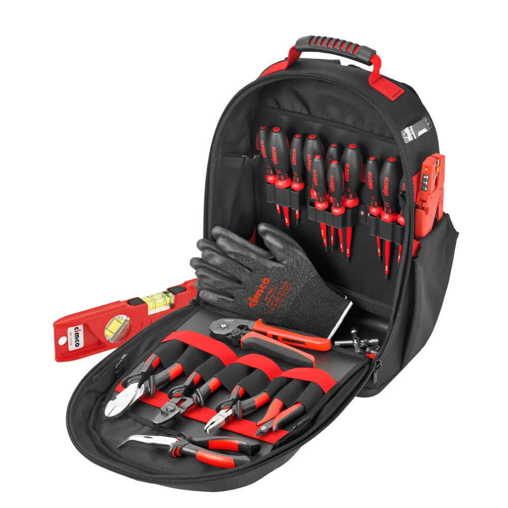 Rucsac profesional pentru electricieni, echipat cu 21 de scule esențiale pentru lucrări electrice și intervenții de service. Fabricat din material rezistent la intemperii, rucsacul oferă protecție optimă uneltelor și este conceput pentru transport confortabil, chiar și pe durate mai lungi.