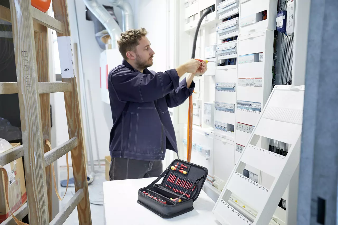 Acest set de 32 de unelte VDE Wiha acoperă toate profilurile standard de șuruburi, fiind ideal pentru șantiere, sisteme solare sau tablouri electrice. Bitii subțiri Wiha slimBit sunt până la 33% mai subțiri, permițând acces facil la șuruburi și elemente ascunse. Cu mânerul PicoFinish® poți lucra precis la fixări delicate, iar mânerul SoftFinish® lung oferă forță suplimentară pentru bitii mai mari. Geanta Wiha multifunctională, premiată pentru designul său, poate fi folosită ca suport de lucru și include curea pentru agățare și bază detașabilă. Setul permite depozitarea compactă și rapidă a uneltelor și este compatibil cu sistemul Wiha ElectricVario. Fiecare piesă este testată conform standardului IEC 60900 pentru siguranță pe părți sub tensiune până la 1.000 V AC.